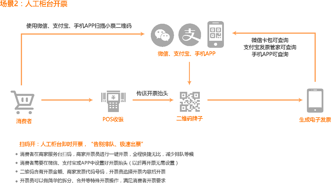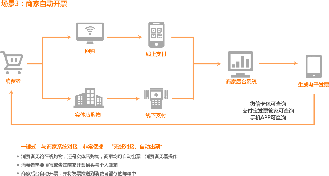 無(wú)縫自動(dòng)開(kāi)具電子發(fā)票服務(wù),節(jié)約企業(yè)人力、時(shí)間成本,提高工作效率減少差錯(cuò)。消費(fèi)即開(kāi)即獲取電子發(fā)票,不用等待,易保存,不易丟失,提升消費(fèi)者體驗(yàn)。